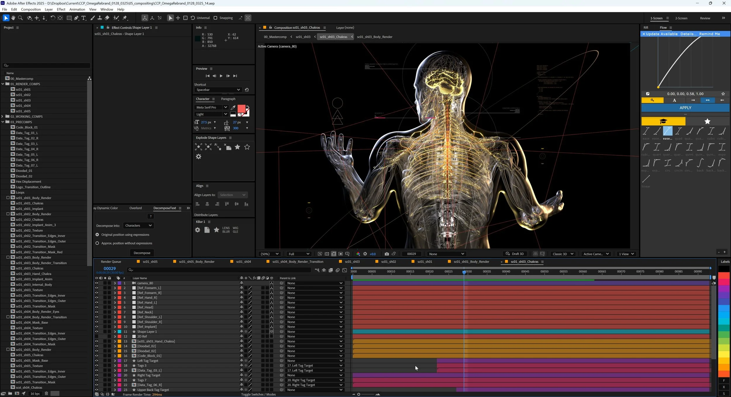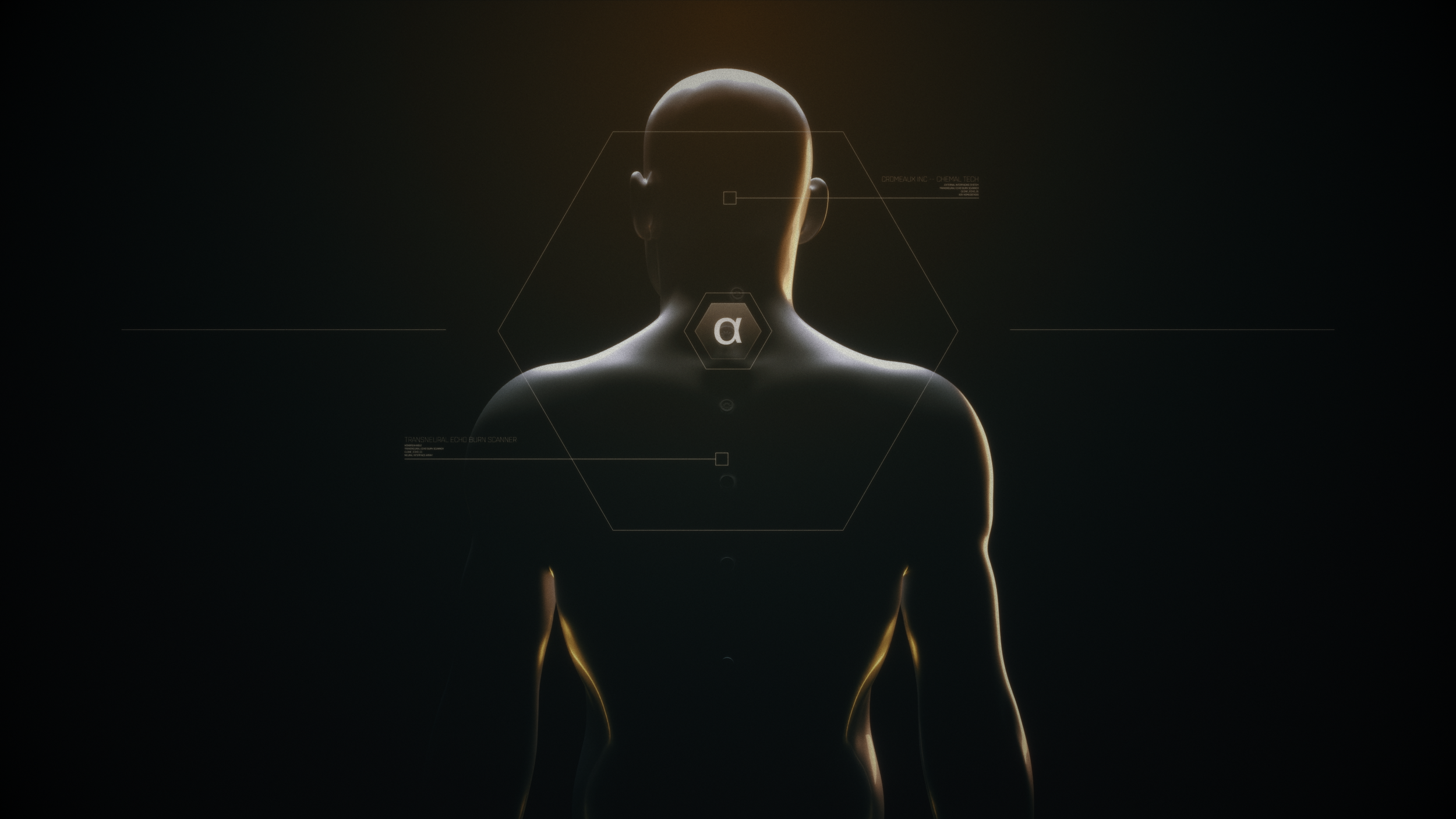 CCP Games brought me on to design and animate an in-game cinematic for Eve Online, marking the player's transition from a free 'Alpha' account to a subscription-based 'Omega' account. In the game's world, this shift is represented as an upgrade to the character’s cybernetic body. Using a detailed anatomical model, I visualised the transformation in a way that conveyed both power and progression.